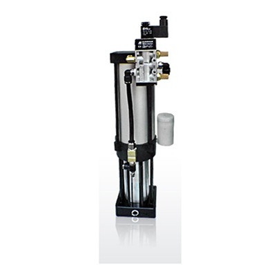 增壓缸是將一油壓缸與增壓器作一體式相結合,利用增壓器的大小不同受壓截面面積之比,因為壓力不變,當受壓面積由大變小時,則壓強也會隨大小不同而變化的原理,從而達到將氣壓壓力提高到數十倍的壓力效果,以預壓式增壓缸為例:當工作氣壓壓在液壓油表面時,液壓油會壓縮空氣作用而流向預壓行程腔,此時液壓油會迅速推動式件作位移,當工作位移遇到阻力大于氣壓壓力時缸則停止動作,此時,增壓缸的增壓腔因為氣動信)動作,開始增壓從而達到成型產品的目的。 氣液增壓缸是結合是氣缸和油缸優點而改進設計的,液壓油與壓縮空氣嚴格隔離,缸內的活塞桿接觸工作件后自動啟程,動作速度快,且較氣壓傳動穩定,缸體裝置簡單,出力調整容易,相同條件下可達到油壓機之高出力,低損耗,安裝容易,所占用的空間小,故障少無溫升之困擾,壽命長,噪聲小,等核心特性。 1、預壓式增壓缸:當工作氣壓壓在液壓油表面時,液壓油會因壓縮空氣作用而流向預壓行程腔,此時液壓油會迅速推動軸心作位移,當工作位移遇到的阻力大于氣壓壓力時預壓軸心則停止動作,此時,增壓缸的增壓段因為氣動壓力動作,增壓軸心亦開始作位移動作,并擠壓預壓缸體里的低壓油,使之增壓從而產生強大推力的效果。 2、直式增壓缸:當工作氣壓壓在增壓段活塞表面時,活塞會因壓縮空氣作用而流向油腔,此時液壓油會迅速推動軸心作位移,此時軸心移動的距離(行程)為高壓力行程(增壓行程)